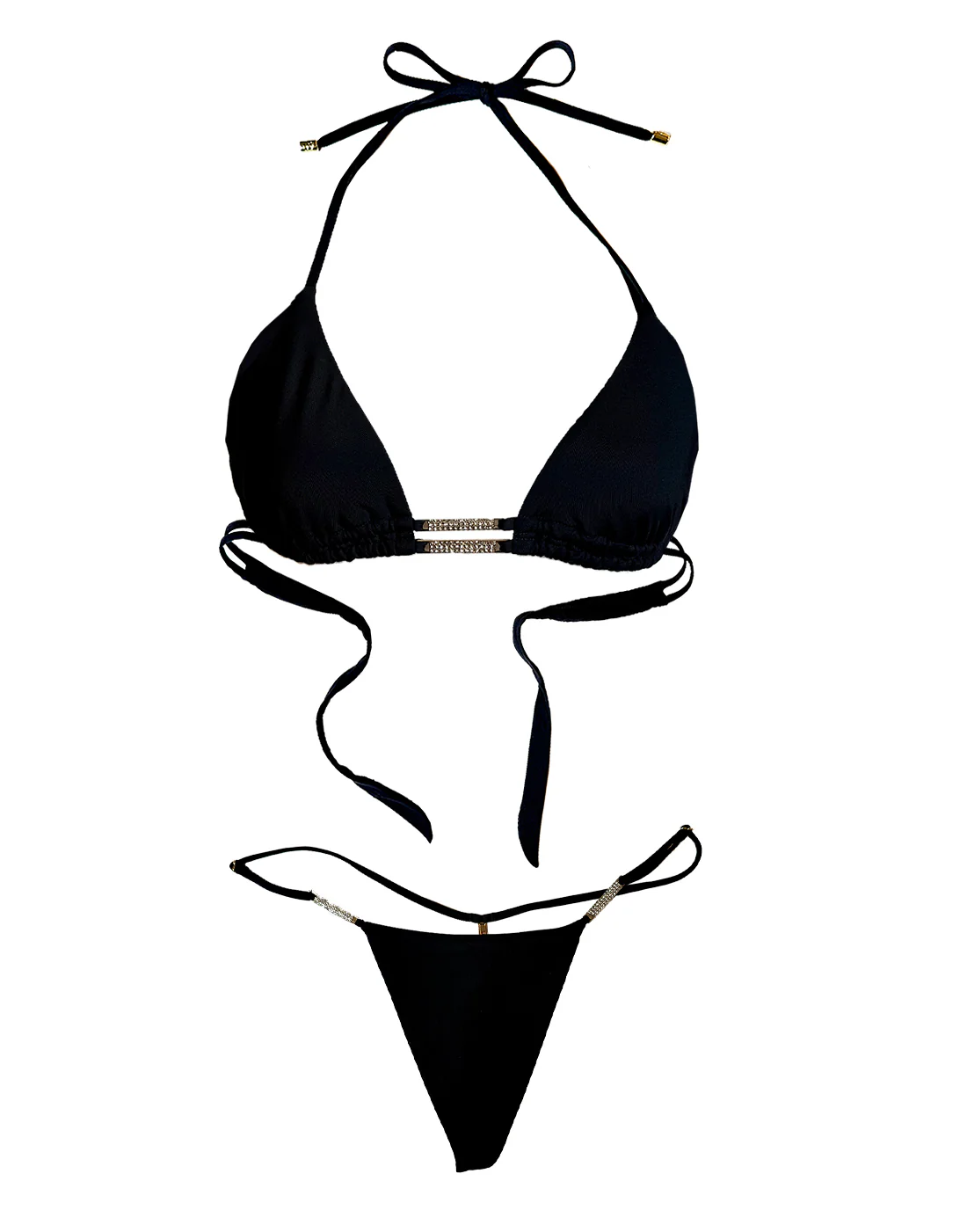 Expertly designed for both fashion and function, the Evie Triangle Top in sleek black is a must-have for any swimsuit collection. The triangle top features stunning gold rhinestone embellished hardware, adding a touch of glamour to your beach or poolside look. Experience comfort and style from the trusted expertise of this top.